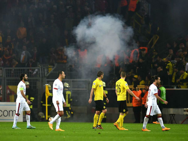 وأجبرت جماهير جلاطة سراي الحكم على إيقاف المباراة التي انتهت بفوز دورتموند 4 / 1 ، مرتين بسبب اشعال الألعاب النارية، كما تم اشعال الألعاب النارية قبل وبعد المباراة، مما أسفر عن إصابة 2 من رجال الشرطة.