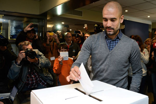 برشلونة 10 تشرين ثان/نوفمبر 2014 (د ب أ)- شارك الأسباني جوزيب جوارديولا المدير الفني لنادي بايرن ميونيخ الألماني في الاستفتاء الرمزي الذي نظمته حكومة إقليم كتالونيا للوقوف على الرأي الشعبي من مسألة انفصال الإقليم عن أسبانيا.
