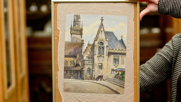 واللوحة ، المرفق بها فاتورة البيع الأصلية المؤرخة في عام 1916، عنوانها "مكتب السجل المدني بميونخ" وترجع لتلك الفترة من حياة هتلر عندما كان يعمل رساما قبل دخوله مجال السياسة والاستيلاء على السلطة في ألمانيا مع بداية الحرب العالمية الثانية.