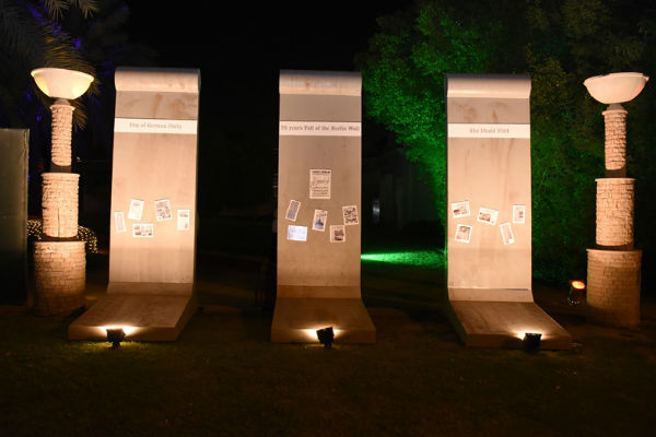 في الذكرى الـ 25 لافتتاح جدار برلين، الذي مهد الطريق لإعادة توحيد ألمانيا، أقام السفير الدكتور لوبكيماير والسيدة زوجته مؤخراً حفل استقبال في الهواء الطلق في أبوظبي. وكان ضيف شرف الحفل معالي الدكتور عبدالله محمد بلحيف النعيمي، وزير الأشغال العامة في دولة الإمارات العربية المتحدة.