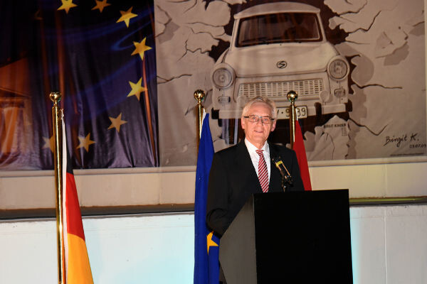 في كلمته خلال الحفل، وصف الدكتور لوبكيماير كيف عاصر بنفسه سقوط جدار برلين. ومن أجل إغطاء أكثر من 500 ضيف الانطباع عن ألمانيا المقسمة حينذاك فقد كلفت السفارة شركة متخصصة قامت ببناء جدار في مكان الحفل بنفس الحجم الأصلي للجدار الذي كان يفصل بين شطري ألمانيا.