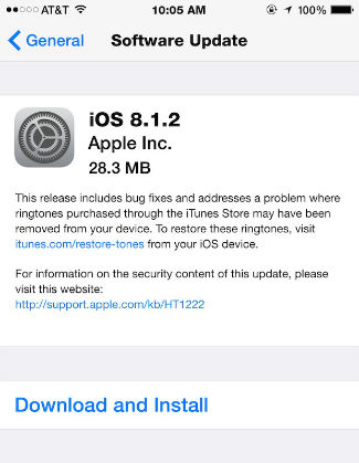 ويتمكن المستخدم من تثبيت الإصدار "آي أو إس 8.1.2" الجديد عن طريق بند تحديث البرنامج في قائمة الإعدادات أو عن طريق المزامنة مع برنامج "آي تيونز" على الحواسب.