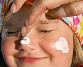ولتجنب مخاطر أشعة الشمس الضارة والحد من خطر الإصابة بسرطان الجلد لدى الأطفال ينبغي الحرص على ارتداء قبعة ونظارة شمسية والاحتماء في الظل، مع استعمال كريمات الحماية من أشعة الشمس.