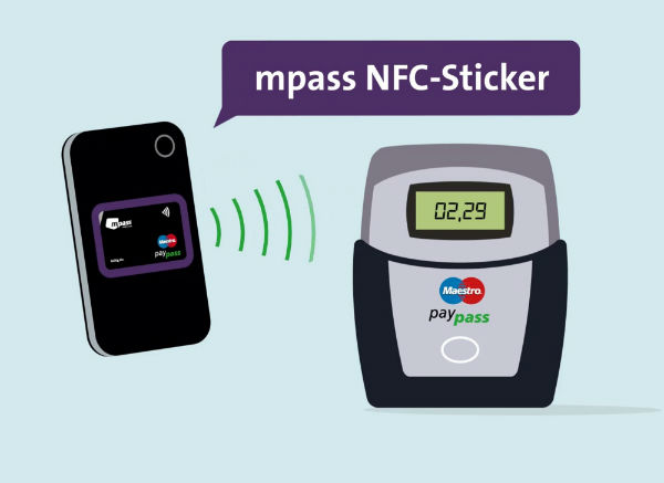 ويتمكن العملاء حالياً من استعمال نظام Mpass؛ الذي لا يعتمد على الهواتف الذكية، ولكنه يستخدم ملصق NFC، الذي يتم لصقه على الهواتف الجوالة أو أية أشياء أخرى. وعلى هذا الملصق يتم تخزين جميع بيانات الدفع الهامة. وعند إجراء عمليات الدفع يتعين على المستخدم تمرير هذا الملصق على الخزينة بالسوبرماركت أو المتجر.