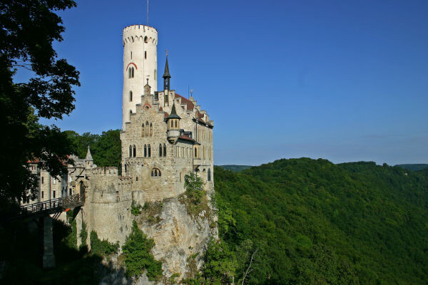 يعد قصر ليشتنشتاين أسطورة أخرى من عالم القصور الأسطورية في القرن التاسع عشر. هذا القصر الجاثم فوق صخرة على ارتفاع 817 متراً، يمنح زواره مناظر خلابة تحبس الأنفاس، بحيث تكاد ترى (رابونتسل "وهي قصة أسطورية ألمانية للأخوين غريم بطلتها فتاة ذات شعر طويل جداً") تدلي شعرها من نافذة في الأعلى.
