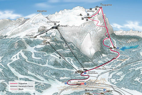 "بيته آين شتايغن".. عندما تسمعون هذه العبارة باللغة الألمانية والتي تعني "الرجاء الصعود"، تكونون على وشك بدء رحلة مثيرة بواسطة قطار "تسان راد بان" الذي يتوجه براحة ومباشرة من "غارميش بارتنكيرشن"، "غرايناو" أو من بحيرة "أيب زيه" إلى الأنهار الجليدية. عندما تصلون هناك، تكتشفون على الطريق الجليدي المثير حتى في فصل الصيف، الثلج الأبدي فوق جبل "تسوغ شبيتسه". في فصل الشتاء وأيضاً في الصيف يضمن لكم الثلج الجليدي متعة التزحلق، كما يمكنكم كذلك القيام بجولات استكشافية وتقوية أنفسكم من جديد في مطعم التزحلق "زون ألبين" وفي "غليتشر غارتن". بعد ذلك بدقائق قليلة تستمر الرحلة بقطار التزحلق "غليتشر بان" مباشرة إلى القمة على ارتفاع حوالي 2962 متراً. وستحظون بفرصة الاستمتاع بمنظر بانورامي فريد بزاوية 360 درجة مع إطلالة على 400 قمة في النمسا، إيطاليا، سويسرا وألمانيا. يمكنكم أيضاً النظر بعيداً إلى خاصرة جبال الألب، فمن خلال مناظير توجيه وتلسكوبات سيكون بإمكانك معايشة البانوراما عن قرب وأنتم على شرفة القمة. في "غبفل ألم" و"بانوراما لاونج" يمكن لكم الاسترخاء في جو جبلي هادئ.