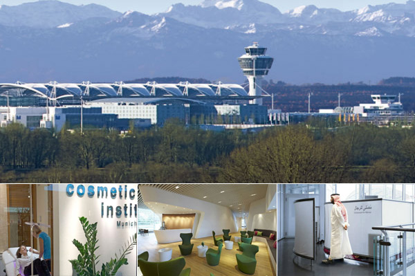 وفي داخل أوروبا تعتبر عيادة المطار الوحيدة التي تتميز بمستوى الخدمات التالي: استقبال شخصي مباشرة من باب الطائرة، خدمة نقل مباشرة من الطائرة إلى عيادة المطار، تخليص إجراءات الدخول والمعاملات الجمركية في العيادة، خدمات الترجمة، برامج سياحية للمرافقين والأقارب وخدمات الإقامة الفندقية.