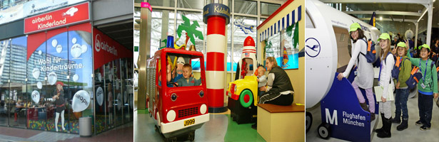 وتقدم بلاد أطفال إير برلين (إير برلين كيندر لاند)، والتي تقع في مركز مطار ميونيخ بين مبنيي الركاب، مكاناً آخراً للأطفال بين عمر 3 إلى 10 سنين، بحيث يمكنهم اللعب تحت إشراف طاقم مدرب في حين يتمكن الأهل من الاسترخاء أو القيام بإجراءات الدخول أو التسوق في متاجر المطار العديدة. وهناك العديد من عوامل الجذب الخاصة بالأطفال، ركن الفنون والحرف اليدوية، برج التسلق مع حرض الكرات، كتل ليغو ناعمة عملاقة، ألعاب كمبيوتر، ألعاب لوحية وسينما خاصة بالأطفال حيث يمكنهم مشاهدة الأفلام سوياً بلغات مختلفة. ويمكن للأطفال حتى الاعتفال بأعياد ميلادهم في بلاد الأطفال (إير برلين كيندر لاند)، التي يتم تنظيمها بالكامل من قبل طاقم مدرب، بحيث يضمن ذلك حفلاً ناجحاً لا يُنسى.