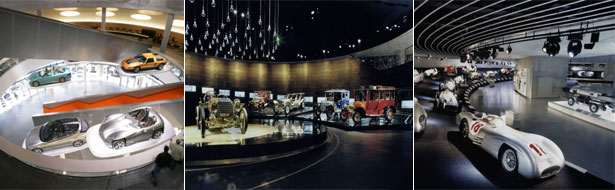 للتعرف على بدايات صناعة السيارات، فما على المرء سوى التوجه إلى الطابق العلوي من متحف "مرسيدس-بنز". فانطلاقاً من هناك يبدأ الزوار طريقهم عبر تاريخ السيارات على جولتين في 9 مستويات، بدءاً من عام 1886 وحتى وقتنا الحاضر. ويعتبر المتحف الوحيد في العالم الذي يعرض 127 سنة من تاريخ السيارات دون فجوات. لقد صمم المبنى على غرار دوامة الحمض النووي بشكلها الحلزوني المزدوج. يوجد في داخله 160 مركبة وأكثر من 1500 معروض على مساحة 16500 متر مربع.