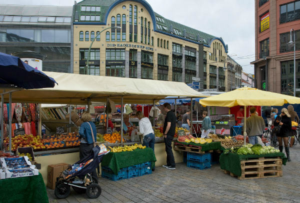 ومن الجدير بالذكر أنه ليس هناك أي شيء غير موجود في الأسواق الأسبوعية في برلين. فالمرء يجد كل ما لذ وطاب في نهاية الأسبوع في أسواق المنتجات التي تقام في ميادين "كولفيتس بلاتس"، و"فينترفيلد بلاتس"، وبمحاذاة ضفة مايباخ.