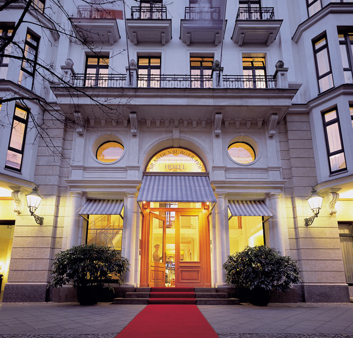 يقع "براندنبورغ هوف برلين" (BRANDENBURGER HOF BERLIN)، الذي يعتبر قصر المدينة الامبراطوري "شتادت بالاس"، بالقرب من شارع "كورفورستندام"، في وسط برلين. ويضم هذا الفندق المصنف ضمن فئة الخمس نجوم، 14 جناحاً و58 غرفة. كما يتميز بنمط بروسي، وفن وحداثة كلاسيكية تطغى على أجوئه، التي يتخللها شيء من أيطاليا.