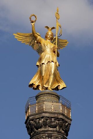 يعتبر من رموز مدينة برلين المشهورة ويعلوه التمثال الذهبي لآلهة النصر فيكتوريا. يبلغ ارتفاعه 69 متراً. هذا الرمز تأسس عام 1873 في ساحة الملك (كونيغسلاتس) أمام مبنى الرايشستاغ للتذكير بالحملات العسكرية البروسية ضد الدنمارك والنمسا وفرنسا. وبناء على تصاميم (ألبرت شبير) نُقل عمود النصر إلى مفترق الطرق الذي يدعى (النجمة الكبيرة) وتم وضعه على قاعدة مصنوعة من الغرانيت الأحمر. في الجزء العلوي تقف فكتوريا، التي تمثل آلهة النصر في الأساطير الرومانية.