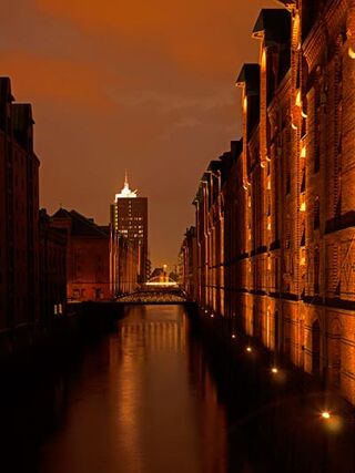 تعد منازل التجار البديعة على ضفتي نهر الإلبه ومجمع (شبايشر شتادت) التاريخي الضخم شهادة على تاريخ مدينة هامبورغ الحرة الهانزية. فمدينة المخازن التاريخية التي يمتد عمرها إلى أكثر من 100 عام، ستجعلك تعيش أجواءً ذات نكهة خاصة. ويعتبر هذا المجمع التاريخي أكبر مجمع لمخازن السلع في العالم، حيث يتم هنا تخزين بضائع ذات قيمة عالية كالشاي والكاكاو والقهوة والتوابل والتبغ بالإضافة إلى العديد من المنتجات الأخرى، كما يوجد فيها أكبر مخزن للسجاد الشرقي في العالم. وخلف الحائط الضخم لمدينة المخازن يمكنك أن تتمتع بجو رومانسي بين قنوات المياه الجارية وأبنية العصر الغوطي والسطوح الموشورية والأبراج الغريبة الشكل. ويصبح المنظر أكثر رومانسيةً في ساعة الغروب.