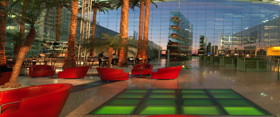 أما بالنسبة لفندق المطار ذي الخمس نجوم (كيمبنسكي) (Airport Hotel Kempinski )، فإن ردهة الاستقبال فيه، التي تعد الأضخم في أوروبا، تتزين بأشجار نخيل حقيقية من ولاية فلوريدا، وتعد مؤشراً على تجربة سفر رائعة يمكن للمرء أن يتوقعها هناك. يقع فندق (كيمبنسكي) في قلب المطار، بين مبنى الركاب رقم 1 والمبنى رقم 2، حيث يتميز بأعلى مستويات التميز الأوروبي. ويوفر هذا الفندق بيئة مريحة وكفاءة عالية، بدءاً من تنوع نكهات أطباق بوفيه الإفطار ووصولاً إلى الراحة والرحابة التي تتميز به غرفه (434 غرفة) وأجنحته (46 جناحاً). وفيما يتعلق بالمؤتمرات والحفلات فهي تلبي حلم مخططي الاجتماعات هنا، وذلك نظراً لموقع المطار، المرافق الواسعة (30 مرفقاً للمؤتمرات والحفلات) والكفاءة المهنية للموظفين بشكل عام. أما ردهة الفندق التي تصطف فيها أشجار النخيل فهي زجاجية وتتسع لاستضافة فعاليات تصل إلى 600 ضيف. ويوفر الفندق مركز لأعمال يشتمل على خدمات سكرتارية، مكاتب للتأجير وقاعات اجتماعات. وقد تم تجهيزه مع أجنحة قابلة للتغير مع طاولات مؤتمرات خاصة مناسبة لـ 4 وحتى 6 أشخاص. وبالنسبة للمنتجع الصحي الخاص بالفندق (فيت آند فلاي سبا) (Fit & Fly Spa) فهم يمثل واحة فخمة لإنعاش الجسيم والعقل والروح. وهو مفتوح أمام العامة، ومن ضمنهم المسافرين الذين لا يقيمون في فندق (كيمبنسكي).