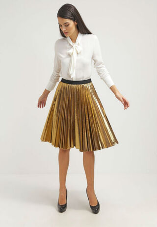 التنورة البليسيه الذهبية لإطلالة متلألئة في الحفلات