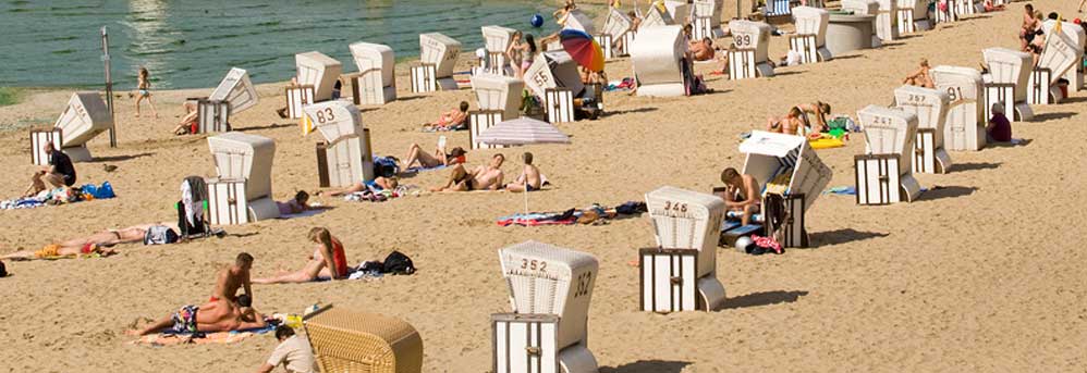 وتعتبر الحمامات الشاطئية لبحيرة (فان زيه) وبحيرة (موغل زيه) أشهر وأكبر حمامات طبيعية رسمية. ولكن حتى البحيرات الأصغر مثل (شلاختن زيه) أو (كرومه لانكه) التي تقع في المنطقة الغربية (تسيلندورف) تدعوك أيضاً للاستمتاع بأماكن السباحة الصغيرة المثالية.