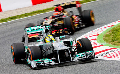 وكان مرسيدس أجرى تجارب بالاشتراك مع شركة "بيريللي" الموردة للإطارات ببطولة العالم عقب سباق الجائزة الكبرى الأسباني الذي جرى في برشلونة في 12 أيار/مايو الماضي. ولكن لم يتم الكشف عن هذه التجارب سوى قبل سباق موناكو ، الذي فاز به سائق مرسيدس نيكو روزبرج ، بقليل.