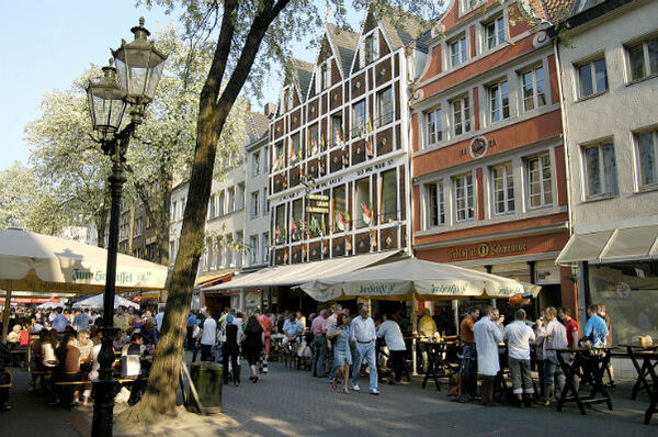 لا يوجد مكان آخر في عاصمة ولاية (نوردراين فستفالن) يمكن للمرء أن يكون فيه قريباً جداً من نبض المدينة كما هو الحال في البلدة القديمة (ألتشتادت) بين نهر الراين وجادة (هاينريش هاينه). باختصار، هنا يوجد كل شيء. فمع وجود حوالي 260 من المطاعم والحانات والبارات والنوادي الليلية والتي تتركز في منطقة واحدة صغيرة، يجد محبو الحفلات والباحثون عن الأجواء الثقافية والتاريخية كل ما يصبون إليه.