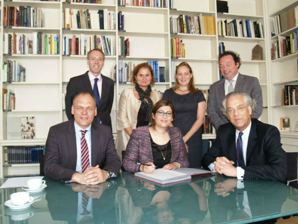 وقعت السيدة منال عطايا المدير العام لإدارة متاحف الشارقة مع المدير العام للمتاحف الحكومية ببرلين السيد ميشال أيسينهاوير والسكرتير العام لمعهد جوته عقد تعاون طويل المدى.