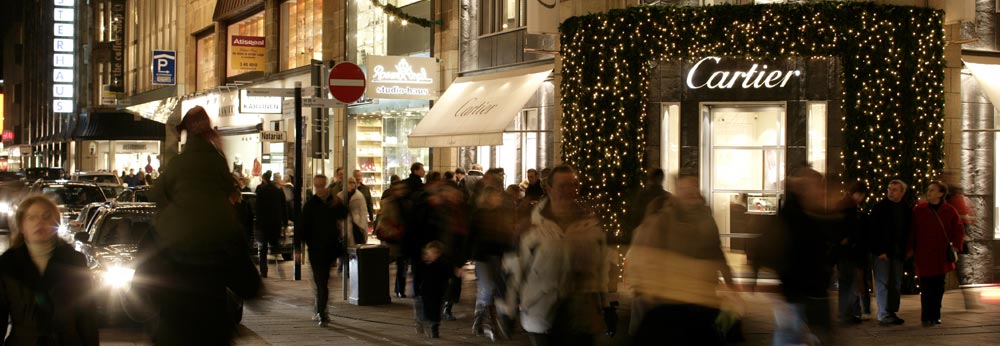 وقبل نهاية كل عام، لن تكون المتاجر وحدها ما يجذب المتسوقين والسياح، بل أيضاً أسواق أعياد الميلاد التي تتزين بالألوان والأضواء المنعكسة على صفحات الماء، كما تنبعث من أكشاكها الصغيرة رائحة القرفة واللوز والمأكولات والحلويات الشعبية اللذيذة التي يتم إعدادها خصيصاً لهذه المناسبة. وهنا يبرز سوق أعياد الميلاد (فنتر تساوبر) التي يضع زواره في عالم من السحر الشتوي كما يمنح الصغار أيضاً فرصة اللعب واللهو.