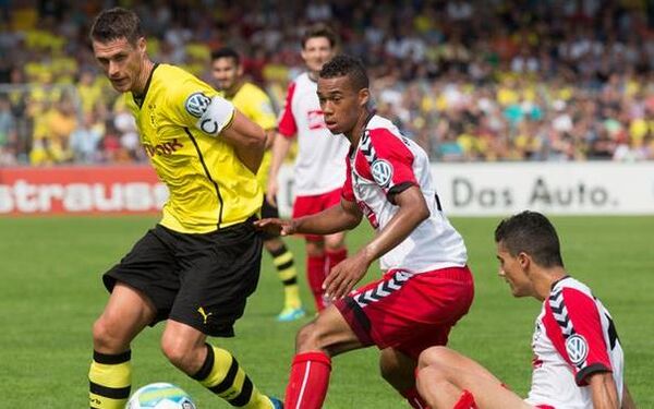 انتظر فريق بوروسيا دورتموند لبعض الوقت قبل أن يهزم فيلهلمزهافن 3 / صفر بينما احتاج فرايبورج إلى وقتا إضافيا قبل أن يفوز على نيوزتريلتيتز 2 / صفر لينجو فريقا البوندسليجا من الخروج المبكر من الدور الأول لكأس ألمانيا لكرة القدم.