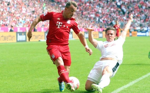 وجاءت الدقيقة 33 لتعلن عن الهدف الأول لبايرن عن طريق شاكيري الذي تلقى تمريرة توماس مولر العرضية من الناحية اليمنى ليهيأها لنفسه ويسدد تصويبة قوية بقدمه اليسري سكنت الزاوية اليمنى الضيقة لبومان.