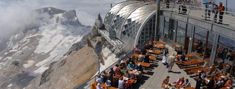 ما أنسب مفردة يمكن لها أن تصف المشهد البانورامي لأعلى جبال ألمانيا؟ لا شك في أنها: الإثارة! تبدأ الحكاية من ترّاس قمة الجبل ولا تنتهي عنده، فكيفما أدار الزوار وجوههم هناك، ستلتقط عيونهم أروعَ المناظر الطبيعية، علاوةً على المشهد الخلاب لأكثر من 400 قمة جبلية في أربع دول تظهر قريبة جداً من خلال التلسكوبات/ المناظير وأجهزة المشاهدة الأخرى ذات التحريك الرقمي (Viscope). وفي النقاط المخصصة للتصوير، يستطيع الزائر أيضاً التقاط صور تذكارية لتلك اللحظات الفريدة من على قمة الجبل في جميع الأوقات بفضل خاصية التوقيت الذاتي للكاميرات المتوافرة هناك. وعلى قمة الجبل يمكن رؤية صور بناء النفق وممرات تسوغ شبيتسبان (Zugspitzbahn) التي تعود إلى أكثر من 80 عاماً، وذلك في المعرض المجاني المعروف باسم "السياحة، التكنولوجيا، الطبيعة – تسوغ شبيتسه". ولجولة عبر المقتنيات التاريخية؛ استُخدمت الأفلام والصور والزوار الفضوليون الذين يقومون بشرح توضيحي لتطور تسوغ شبيتسه منذ تسلُّقه لأول مرة في العام 1820 وحتى يومنا هذا.. وكلتا الوسيلتين مثيرتان ومفيدتان في آن معاً.