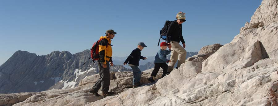 تحول المكان الذي سبحت فيه سمكة يوماً ما حول شِعاب مرجانية منذ حوالي 210 ملايين سنة إلى مكان يجلس فيه المتسلقون على الصخور الخشنة المؤمَّنة بشكل جيد حول (ألبشبيتسه) للاستمتاع بالمناظر الآسرة في الأعماق واللحظات السامية على القمم الجبلية. وحول محطة جبل (ألبشبيتسبان) للتلفريك يُستقبل الزوار من هواة التسلق بخيارات مبهجة لمسارات بسيطة وقصيرة نسبياً للتسلق عن طريق فيراتا للرحلات، ويسهل الوصول إليها جميعاً عن طريق التلفريك. إضافةً إلى ذلك، ثمةَ 10 مسارات تسلق أخرى تحمل مسميات؛ مثل: "بالو" (Baloo)، أو "موفغلي" (Mowgli)، أو "الفيل بينيامين"، من شأنها أن تبعث السرور وتوفر المتعة للمتسلقين المبتدئين والعائلات والأطفال ولكل من يخطط للتسلق في فترة ما بعد الظهر، وتحتضن جميع تلك المسارات خلفيةٌ من المشاهد الجبلية الخلابة. وبفضل (ماورلاوفَرْ شْتايغ) (Mauerläufersteig)، تُعَدُّ منطقة غارميش-كلاسيك ملاذاً حقيقياً للتسلق. تستغرق هذه النزهة نحو ثلاث ساعات صعوداً إلى الأعلى، وعبر وجه بيرناداين الصخري (Rrocky Bernadein Face) الذي يُعتبر تحدياً حتى للأَلبِيين الطموحين.