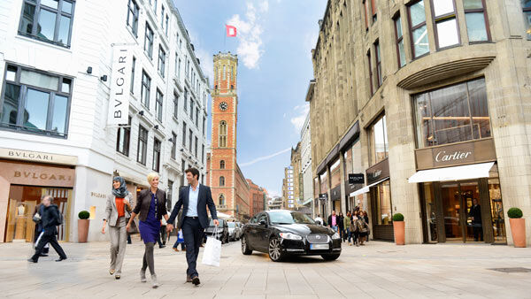 ويعد شارع "نوير فال" بمثابة شانزليزيه مدينة هامبورغ. وعلى الرغم من أن طوله، الذي يبلغ حوالي كيلومتر واحد، ليس بطول تلك الجادة الباريسية، إلا أنه يعتبر واحداً من أفخم عشرة شوارع تسوق في أوروبا. فهنا تجد المتاجر الرائدة لمصممي الأزياء الواحد يلي الآخر، مثل "اسكادا"، "يووب"، "غوتشي"، "لويس فيتون"، "سانت إيميل" والمتجر الهامبوري "جيل ساندر". وتجد مجموعة من فساتين الزفاف والسهرة الجميلة عند "باك-مودن"، ونبع من أقلام "مون بلان" الفخمة. وهناك أيضاً معاطف زرقاء واقية من المطر عند "لاداج اند أولكه" التي لا تزال تعد صرحاً للموضة. وبالنسبة للملابس الأنيقة، فليس هناك أفضل من متجر "أونغر"، أما الجودة الخاصة بالملابس النساء الداخلية فيمكن الحصول عليها عند "مورينغ"، الذي يعد أقدم متجر للكتان والملابس الداخلية النسائية في هامبورغ. وتتنوع إبداعات المجوهرات الرائعة من "إتش. شتيرن" و"فيمبه"، التي تقدم مجموعة من الخيارات تمتد من التقليدية إلى التجريبية. وهناك أيضاً منتجات بأسعار تتنتاسب مع الميزانيات الأكثر تواضعاً.