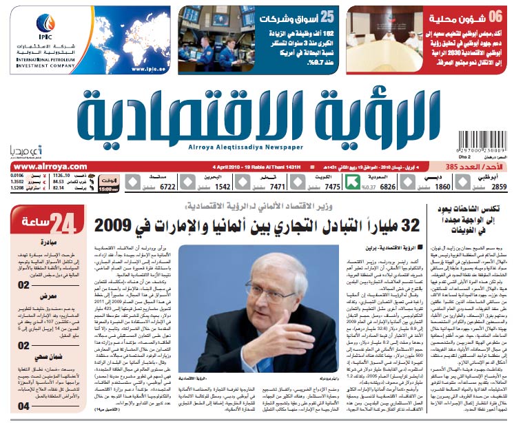 في شهر أبريل من العام 2010 قامت صحيفة (الرؤية الاقتصادية) بالتعاون مع وكالة (بريدج ميديا نيووز) بتخصيص عدة صفحات تناولت خلالها العلاقات التجارية الألمانية الإماراتية وسلطت الضوء على أهم القطاعات الاقتصادية الألمانية كالبنوك وصناعة السيارات والخدمات اللوجستية والطاقات المتجددة والسياحة والصحة وغيرها.