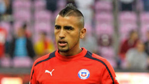 ريو دي جانيرو 19 حزيران/يونيو 2014- ظهرت علامات السرور والبهجة على وجه أرتورو فيدال نجم خط وسط منتخب تشيلي لكرة القدم بعد فوز منتخب بلاده بالمباراة التي جمعت بينه وبين نظيره الأسباني في إطار منافسات الجولة الثانية من الدور الأول لبطولة كأس العالم 2014.
